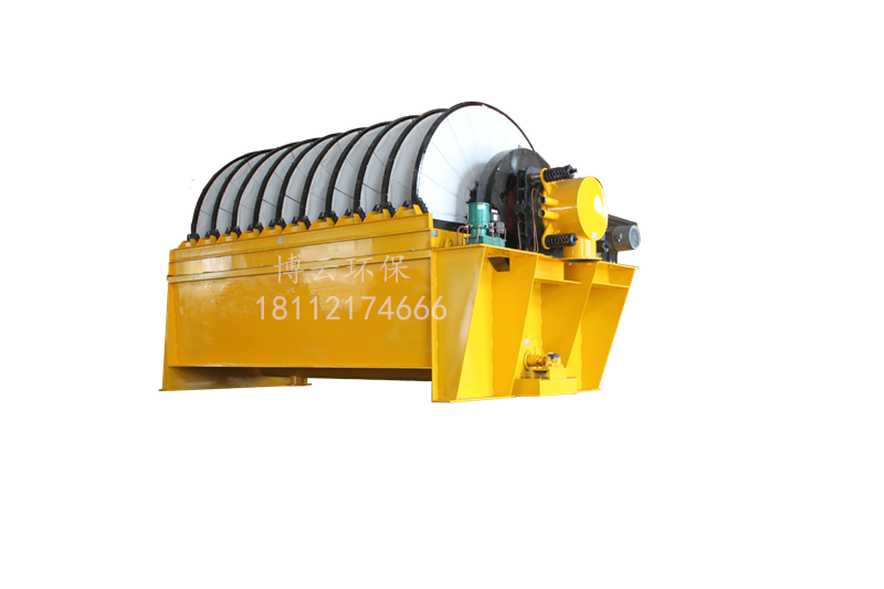盤式真空過濾機由各個單獨的扇形片的圓盤構成。每一個扇形片為 單獨的過濾單元,由濾布做成布套在扇形片上形成濾室。過濾盤由電機通過減速器及開式齒輪傳動來驅動 ,過濾盤順時針方向轉動,濾室里的礦漿在吸附區(qū)借助于真空泵在過濾介質兩側形成的壓力差,附著在過 濾盤上形成濾餅后,攪拌器旋轉防止固體沉淀,濾餅離開液面后,在真空作用下繼續(xù)脫去水分。濾液透過 濾布,經過濾液管,從分配頭排出。濾餅在卸料區(qū)由反吹風卸料落入排料槽,整個作業(yè)過程連續(xù)循環(huán)進行 。